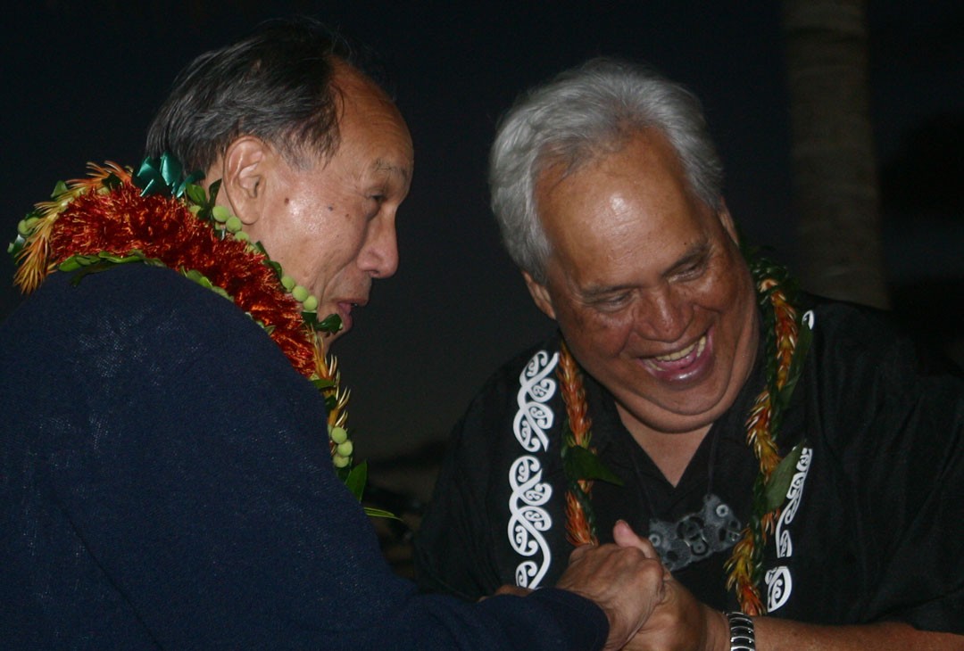 - Kekuni shares a laugh with John Keola Lake, 2005